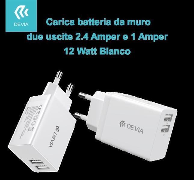 DEVIA CARICA BATTERIA 2 USCITE 2.4 A e 1 A 12 WATT WHITE